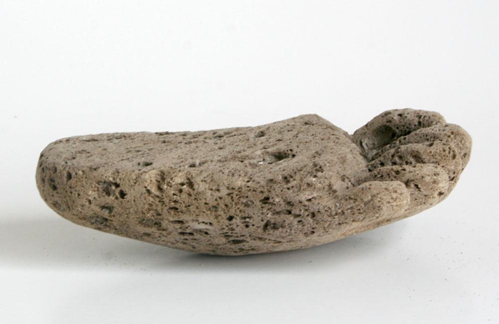 Handmade of natural volcanic pumice stone, so size and color vary slightly. Some are left feet, some are right.