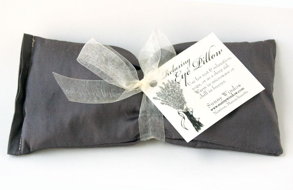 Filled with flax seeds and the finest French lavender, our luxurious dupioni silk eye pillow may be heated in the microwave or cooled in the fridge or freezer for a relaxing eye mask. Great for yoga, naps, headache relief, and all kinds of rest and relaxation. Handmade by Sunny Window.